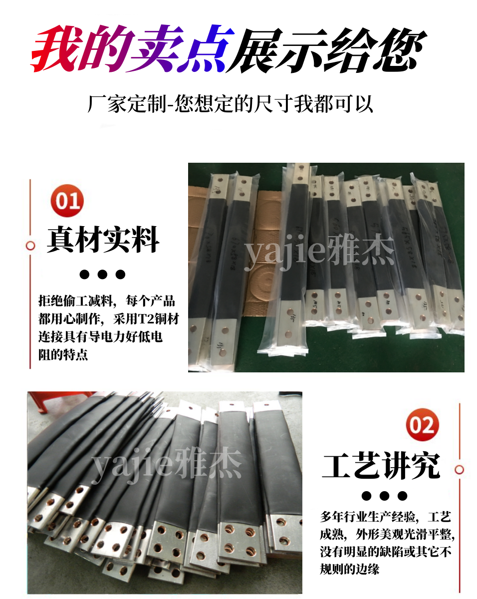 雅杰来图来样定制-10A-5000A镀锡铜编织带软连接TZX-15